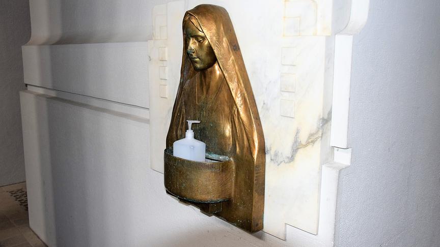 Wir folgen Claudia Muchitsch durch die langgezogene Allee hinein in das Innere des Zentralfriedhofs. Vorbei an kunstvollen Steinfiguren und Ornamenten, an liebevoll gestalteten Gräbern und schönen farbenprächtigen Blumenbeeten, halten wir bei einer sehr eindrucksvollen Grabstätte an.